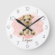 Personalize este relógio giro de um cachorrinho beige com cor d'água com um fundo rosa. Excelente para um berçário, quarto de criança ou qualquer lugar onde os seus pequenos passarem o dia.