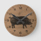 Relógio Redondo Pig Silhouette Faux Wood Country