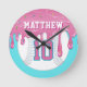 Step up to the plate with this personalized Baseball Drip clock, featuring a pale blue and pink ice cream drip design. The eye-catching drip effect adds a fun twist to classic baseball designs — ideal for kids, teens, or anyone who loves the game!