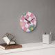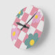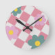 Relógio Redondo Pink Gingham Floral Pattern – Retro Cute Flower