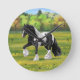 Relógio Redondo Pinto Negro Piebald Gypsy Cavalo de Rascunho de Va