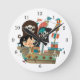 Relógio Redondo Pirata e navio de pirata