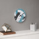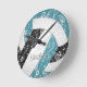 Esse bonito relógio na parede do vôlei apresenta a imagem realista de um vôlei teal, preto e branco que tem um padrão de rabiscos de paisagens, flores e penas em branco cobrindo os téal & pretos do vôlei e os números da face do relógio - personalize com o nome do atleta - de katz_d_zynes