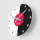 Pontos coloridos da cinza real de prata no relógio de parede preto e branco. O texto pode ser personalizado. Este relógio é um presente maravilhoso!