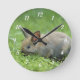 Fotografia de um coelho doce do bebê que mordisca na grama.