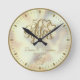 Um presente de relógio de parede de 50º aniversário de casamento elegante e sofisticado com a frase "50 anos dourados". Basta adicionar seus nomes e data de aniversário de casamento. Uma pequena rosa dourada brilhante ornamentada na parte inferior e um fundo iridescente dourado.