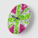 Voe a bandeira BRITÂNICA com este design de Union Jack do divertimento que caracteriza as estrelas dispersadas sobre do "um fundo estilizado do teste padrão do olhar sequin". Pulso de disparo de parede com um verde limão, um branco, um cinza de prata e um design customizável cor-de-rosa para que você personalize com seus próprios texto, imagens e ideias. Outras opções do estilo disponíveis. Note por favor isto é uma imagem digital impressa da arte, não brilha nem não contem o brilho real ou os sequins.