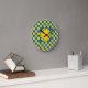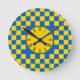 Relógio Redondo Quadrado de cor azul e amarelo / padrão xadrez Rou