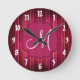 Relógio Redondo Raspberry Dourada Stripe Moderna de Parede Rosa Qu