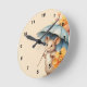 Relógio Redondo Rato azul guarda-chuva laranja flores velhas vinta
