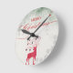 Relógio Redondo Red Reindeer Silver Flocos de Neve Verde Natal