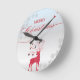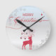 Relógio Redondo Red Reindeer Silver Snowflakes Natal