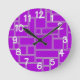 Este relógio tem um design Bauhaus de retângulos feitos com linhas de cinza num campo de roxo.