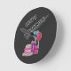Relógio Redondo Retro Neon Bubble Text Happy Birthday
