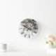 Relógio Redondo de Rosas Brancas Douradas Prateadas em Aquarela. Design único, lindo e elegante. Fácil de personalizar. Itens compatíveis disponíveis.