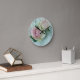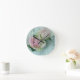 Relógio Redondo Rosas Rosa-chique Na Madeira Azul