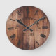 Relógio Redondo Rustic Brown Wood Nome Personalizado Família Farmh