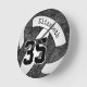 Este relógio de voleibol feminino preto e branco com nome de jogador personalizado e número de camisola apresenta um padrão caleidoscópico floral misturado com os painéis negros de voleibol e um padrão de espiral de abstrato artsy misturado com os painéis brancos - de katz_d_zynes