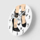 Relógio Redondo Sapatos Pretos de Tiras com Salto Alto Sol Lua Chi