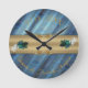 Relógio Redondo Seda azul-esverdeada metálica- Penas Douradas