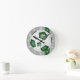 Esta equipe legal colorido relógio temático do futebol para uma menina ou um menino apresenta um gráfico simples de bola de futebol sobre o qual você pode personalizar o nome do atleta, o monograma e o número de camisa - os painéis pretos da bola de futebol foram recoloridos verdes - o fundo é cinza de luz personalizável com gráfico de acento líquido de gol, listras verdes e números da face do relógio branco - por katz_d_zynes