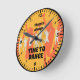 Na moda colorida TIME TO DANCE Wall Clock, mostrando gráficos de silhuetas dançantes. O esquema de cores é amarelo-sol, laranja e creme. Adequado para um tema de cor vibrante. O texto diz que sempre há tempo para dançar na tipografia negra. O texto é PERSONALIZÁVEL para que você possa substituí-lo por texto ou nome de tamanho semelhante. Disponível em outras cores.
