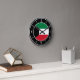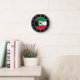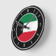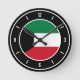 Relógio Redondo Elegante da Bandeira do Kuwait com a bandeira do Kuwait posicionada no meio e adoráveis números do relógio branco na borda do relógio. O delicioso fundo preto com os elementos ovais brancos finaliza o design, colocando ênfase na elegância. A bela combinação de preto e branco com a hábil integração das cores da bandeira nacional faz deste relógio o presente perfeito e a peça do excelente na parede. © 2022 PaísesDoMundo