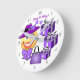 Algo diferente, este sorridente e fofo emoji está a olhar para o excelente vestindo um chapéu roxo colorido com arcos, saco e comprada, com certeza que todos estão a sorrir de volta!