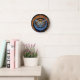 Timeless style meets festive sparkle with this stunning round wall clock featuring a hypnotic spiral of golden and blue lights — inspired by the magical view from inside a giant Christmas tree.