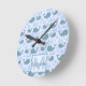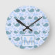 Relógio Redondo Teste padrão bonito do monograma das baleias azuis
