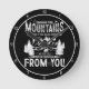 A powerful art piece featuring a majestic mountain and forest landscape with a bear silhouette. Above and below the scene, a profound message reads: THOUGH THE MOUNTAINS MOVE & THE HILLS SHAKE, MY LOVE WILL NOT BE REMOVED FROM YOU, with a reference to Isaiah 54:10. The design is rendered in white against a solid black background, creating a striking and enduring declaration of divine steadfastness.
