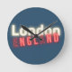 Design tipográfico moderno apresenta "Londres Inglaterra" em texto néon vermelho e branco sobre fundo azul escuro