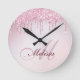 Relógio Redondo trendência elegante de gotas de glitter roxo rosa