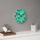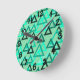 Este design de relógio de parede espalhou triângulos de vários tamanhos em tons de verde-marinho.