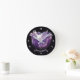 Pretty purple tulip flower with a tiny visiting bee nature wall clock. Flower photography by Susan. This image is available on many cards and products in my main store Smilin' Eyes Treasures. Visit my Profile page to find links to all of my stores.
