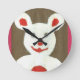 Relógio Redondo Urso Branco com Nariz Vermelho, Boca e Ouvidos (Pa