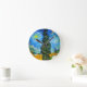 Clock featuring Vincent van Gogh’s oil painting Road with Cypress and Star (1890), also known as Country Road in Provence by Night. People walk along a road passing a beautiful cypress tree underneath a blue night sky with yellow moon and stars. A fantastic gift for fans of Post-Impressionism and Dutch art.