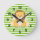Relógio Redondo Verde limão-White Stripes ・ Leão ・ Personalizado