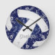 Relógio Redondo vôlei de vôlei floral marinho azul-branco