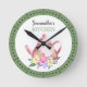 Relógio Redondo Watercolor Floral Teapot Custom Name Kitchen