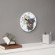 Behind the beautiful watercolor portrait of a Rottweiler dog on this clock is a pretty white rose bouquet. The bouquet and dog image are have an overlay swirl of faux glitter confetti. Dark gold numbers and diamond shaped markers around the perimeter make the clock easy to read. Perfect for anyone who has lost their heart to a Rottie.