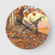 Relógio Redondo Whitetail Deer no outono de Nova Inglaterra cai em