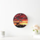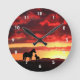 Relógio Redondo Wild Mustang Mare e Foal Silhouette com Sunset
