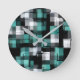 Relógio Redondo Xadrez Abstrato azul-verde-azul-tênue