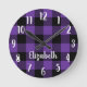 Relógio Redondo Xadrez de Búfalo Preto e Roxo Personalizado