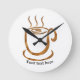Relógio Redondo Xícara Fumegante de Java | Café Curvo de Madeira &