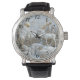 Amidst a serene winter landscape, intricately crafted watch capture the essence of the season. A majestic reindeer stands gracefully by a cascading waterfall, framed by towering snow-laden trees and a soft golden sun illuminating the snowy peaks.