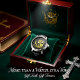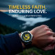 Este trabalho de arte apresenta uma representação ouro de Jesus Cristo, suas mãos levantadas em um gesto de bênção. Uma pomba flutua acima dele, simbolizando a paz e o Espírito Santo. A figura radiante está rodeada por vestes fluentes, enfatizando sua presença divina.