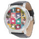 Este relógio masculino tem um médio de quadrados moderno século design com retângulos arredondados com antena em cores modernas do século médio. Quer o mesmo design em cores diferentes? Me mande mensagem.
