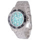 Este relógio masculino tem uma design moderna do século médio de retângulos abertos em azul sobre retângulos abertos em azul de ovo de robin.